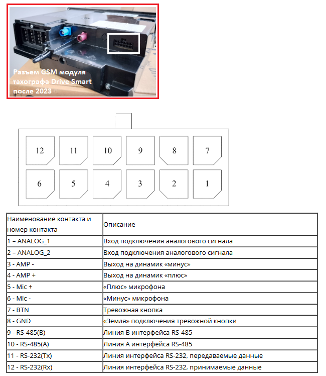 Разъем модема(!) тахографов Drive Smart GSM ПОСЛЕ 2023 г.в.